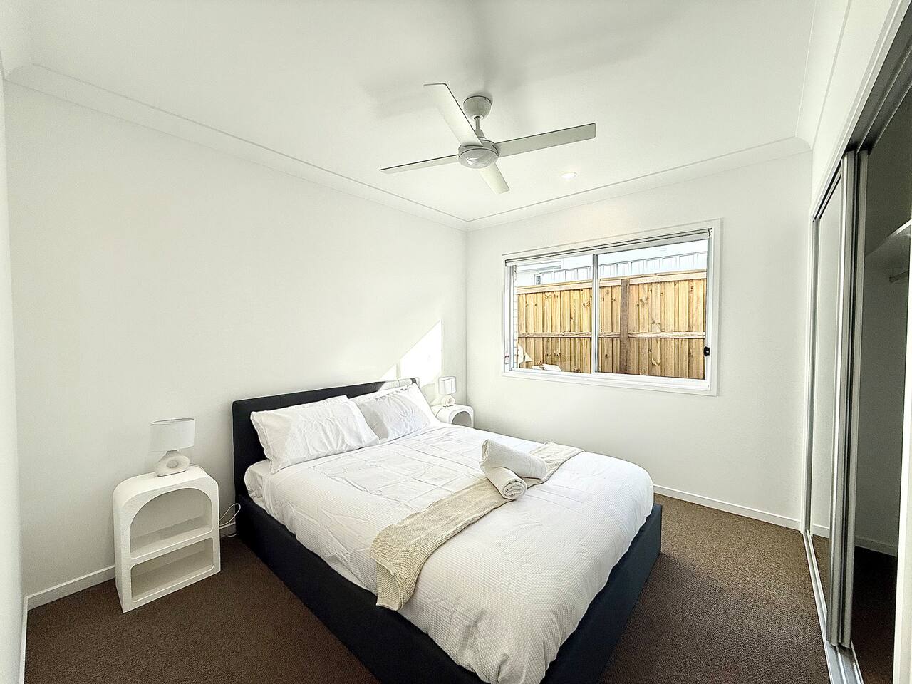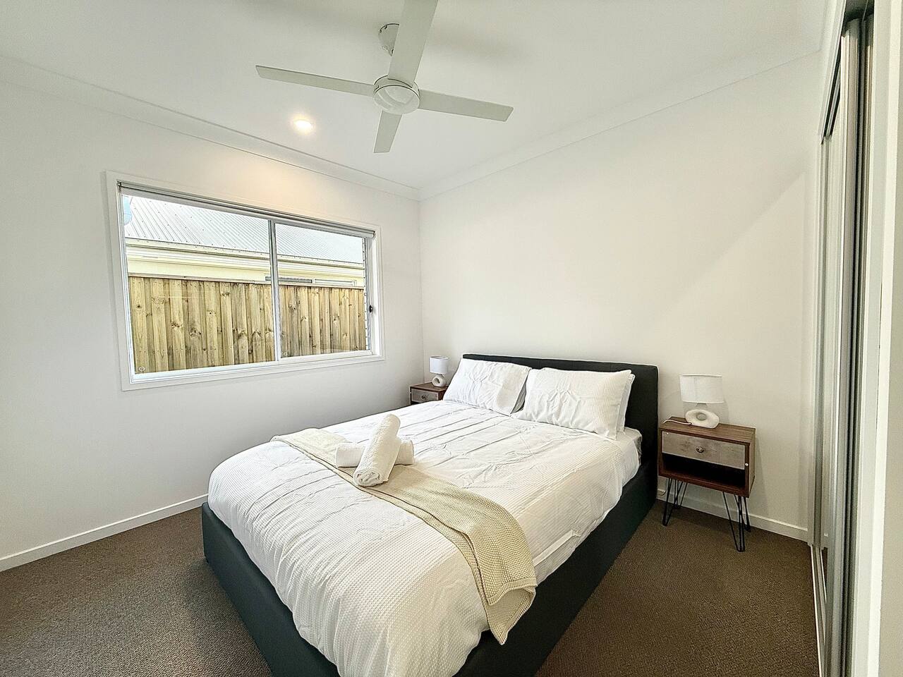 Here’s what to expect: • Four quiet bedrooms with soft bedding • Two bathrooms – practical and clean • Open living and dining space with a comfy couch and TV • Well-equipped kitchen with a dishwasher and coffee machine • Covered outdoor patio with seating • Air conditioning in master bedroom and living room and ceiling fans throughout Nearby adventures: • Start your day at Paperbark Flats Picnic Area, just minutes away • Explore trails ranging from easy boardwalks to challenging hikes • Lookouts over Six Mile Creek and ancient sandstone outcrops • Spot native wildlife, spring wildflowers, and peaceful forest scenes