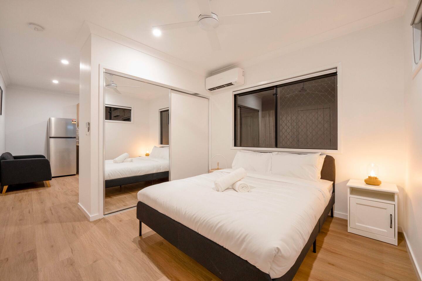 Kick back and relax in our Stylish New Studio! Our house has five self-contained studios! This studio has: - A private bedroom for restful nights & all linens provided - Seperate living area with a modern kitchenette equipped with essentials - Private Bathroom with a shower & toiletries provided Traveling with family, friends, or colleagues? We offer discounted rates for guests booking multiple studios— enquire now!